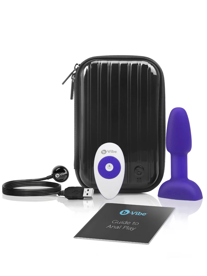Splashproof with a 1-year warranty plus a travel lock, storage case, charging cord and instruction booklet. The wireless remote control works up to 30 feet; use it with or without the remote. USB rechargeable with magnetic charging; a 2-hour charge equals 1 ½ hours of use. The Rimming Petite Plug packs a lot of erotic possibility into one small package.