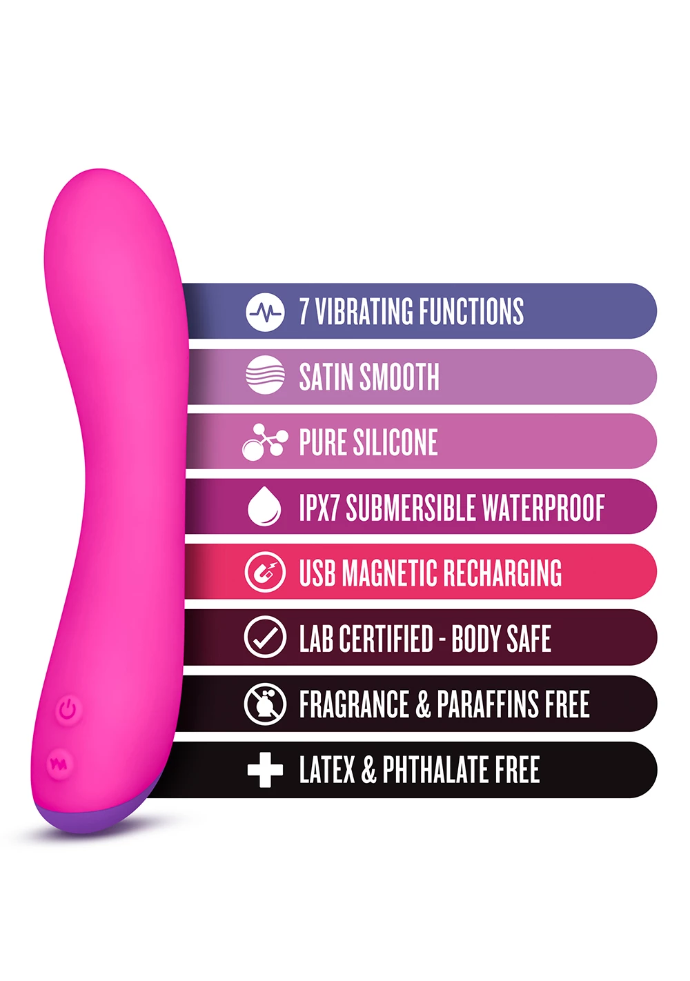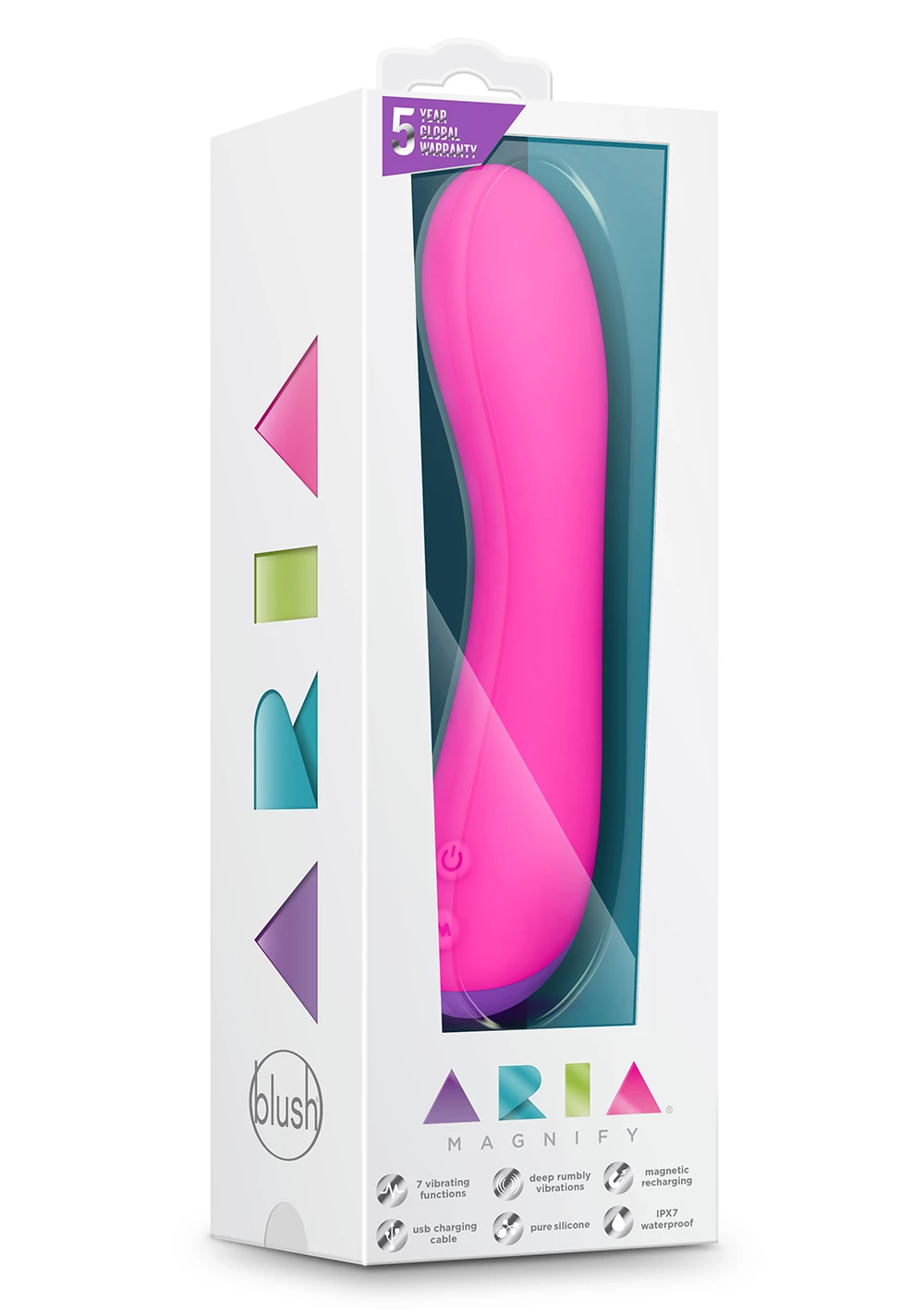 Magnify your senses. This sophisticated vibrator is made of pure, body-safe, silky smooth silicone. Magnify is a work of art and an object of pleasure, carefully sculpted to achieve perfection in form and function. Magnify is powered by a deep resonating motor that emits strong satisfying vibrations and features 7 vibrating functions. The bulbous tip and the curvature are beautifully designed to stimulate your G spot. Whisper quiet. Magnetic/USB rechargeable. Waterproof, submersible, and easy to clean.
