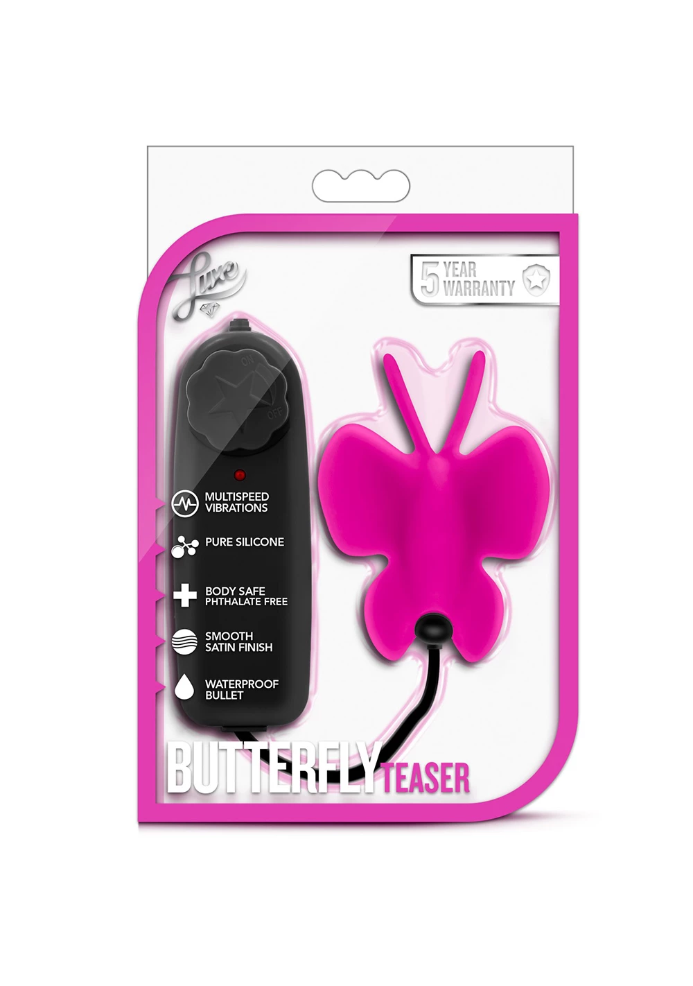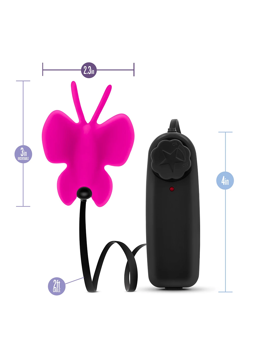 You’ll find effortless pleasure with this sweet, vibrating butterfly. There are multiple points of sensation with the firm silicone body, wings and tickling details. Press the butterfly against any pleasure point, including the vulva, clitoris, perineum, or nipples. The high to low variable speeds allows you to explore sensation in ways that meet you desires. The Pure Platinum Cured Silicone means your butterfly is nonporous and easy to clean.