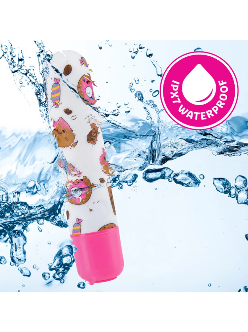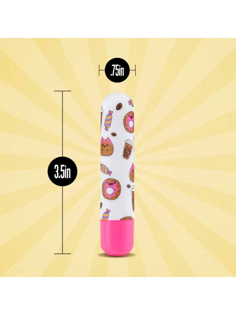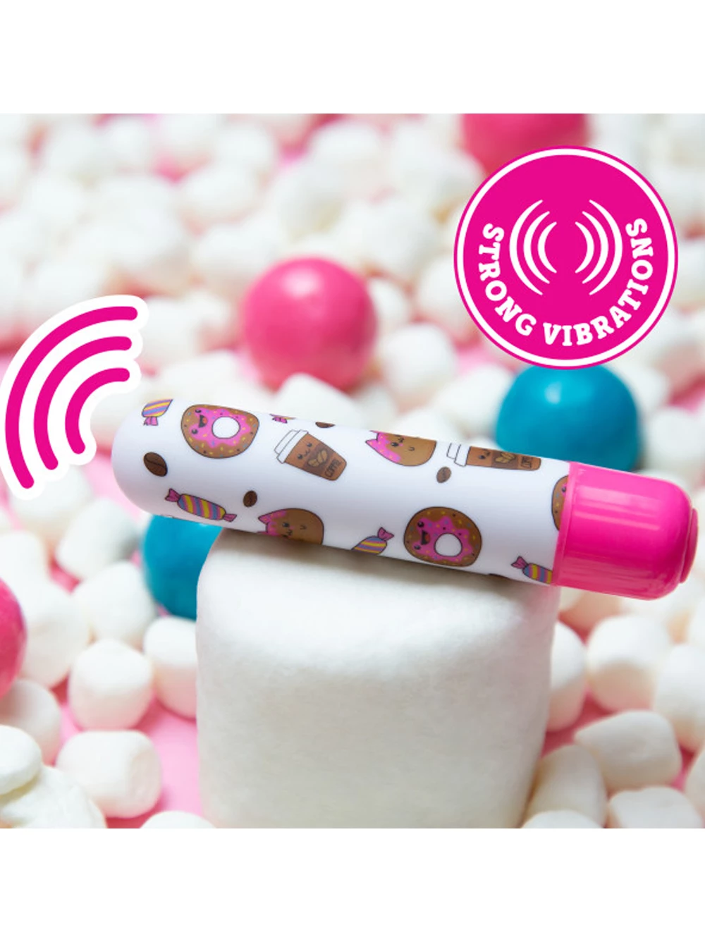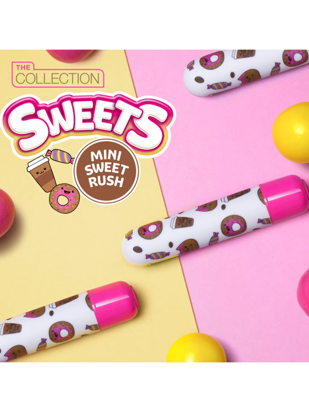 There’s nothing wrong with adding a little sugar to your spice. The Sweets Collection features three adorable and limited-edition bullets that’ll make you want to skip right to dessert. The petite Sweet Rush bullet fits comfortably between your fingers and provides pinpoint stimulation to all your external erogenous zones. Don’t be deceived by its charming design, this tasty little treat is a petite powerhouse. Its compact size means it should fit easily into most dildos, harnesses and wearables already in your collection. The bullet is made of smooth ABS plastic and is fully waterproof. The quiet, powerful single-speed vibrations are controlled by an easy-push button. The Mini Sweet Rush requires 1 AAA battery which is sold separately. This vibe is sure to make an adorable addition to any toy box and is ready to travel wherever your fantasies may lead.