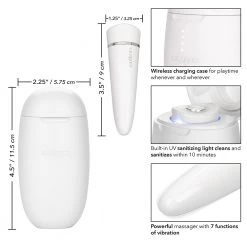 Revitalize was designed to relax and distress. It was made specifically to pinpoint areas that hold tension such as your temple or anywhere you desire. Use with or without the included silicone attachments. Without the attachments, it’s 3 point tip focuses precise vibrations on your body. With the attachments, each shape provides a unique experience and will excite you in a different way. Hugger – as your clitoris or nipples are nestled comfortably between it’s soft extensions, that are bathed in sweet stimulations. Flicker – this specialized attachment is best used but not limited to your clitoris. The thin material transmits vibrations very well, flickering along your clitoris. It’s a delicious sensation. Need we say more? Pillow – uses the vibrations allowing for a more sensual massage.
