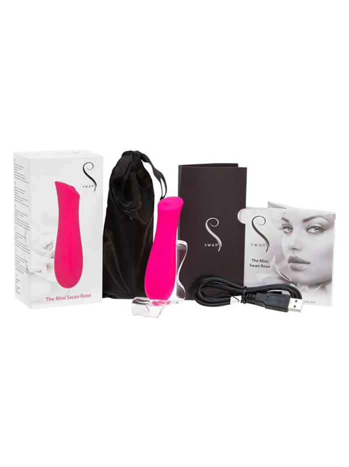 Go anywhere with a petite and powerful waterproof vibrator that sports a contoured, easy-to-hold shape and features a rumbly motor and smooth, seamless silicone design. The end offers a blunt edge to hold against the body, while the edges are great for nestling or angling into–explore a variety of sensations from one small vibe. With single-button controls: press the button to turn on, then hold down for increasing incremental intensity. Tap the button again to turn the vibrator off. Mini Swan is a compact on-the-go vibe equipped with a travel lock – to engage it, hold down the control button for five seconds. USB rechargeable; charge up for 2.5 hours for 2.5 hours of use.