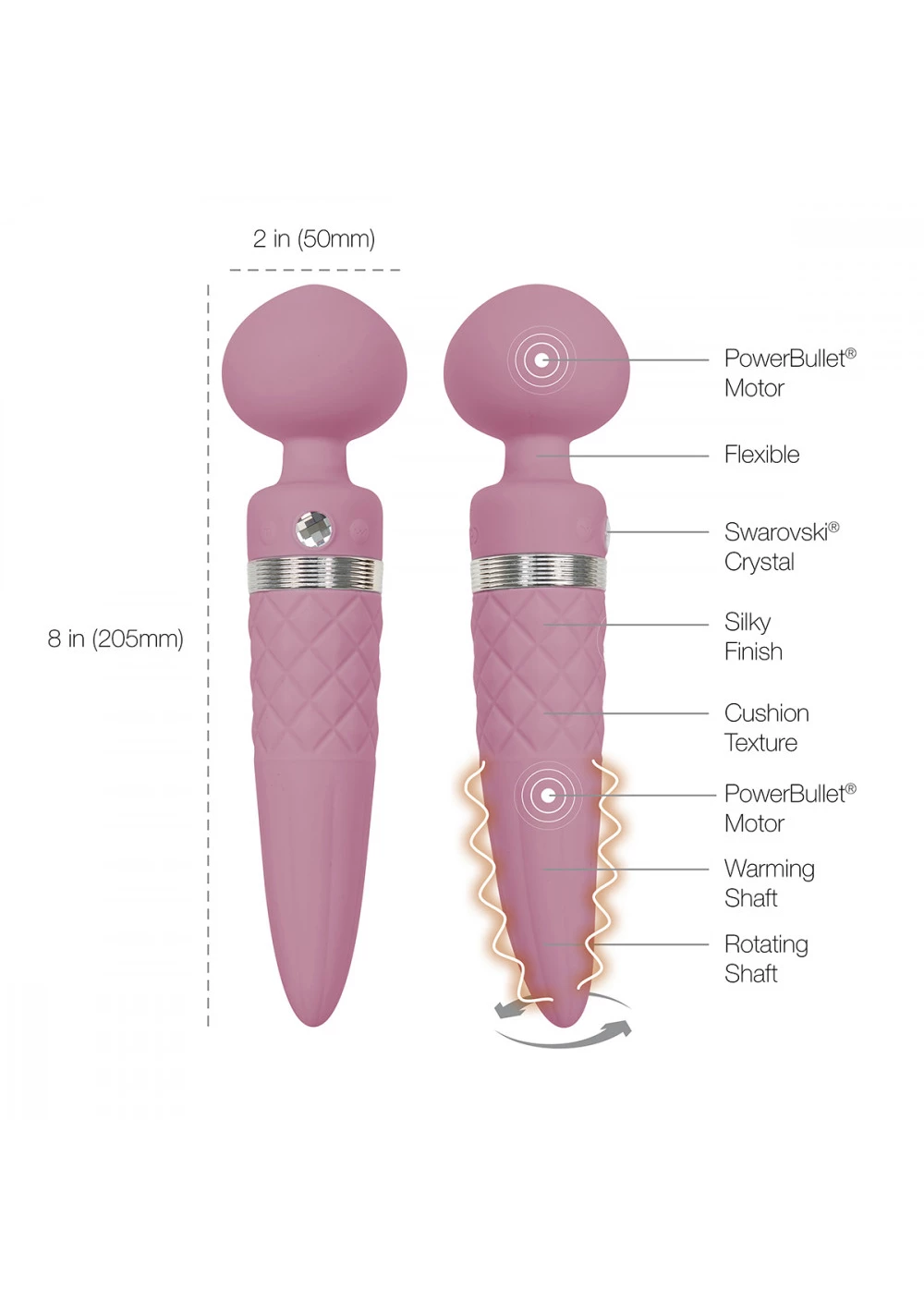 Sultry by Pillow Talk has a smooth rounded head and provides powerful vibrations. It has a tapered insertable handle that rotates 360 degrees for incredible G-spot stimulation. The rotating shaft of Sultry also offers a premium warming feature for added comfort and realism.