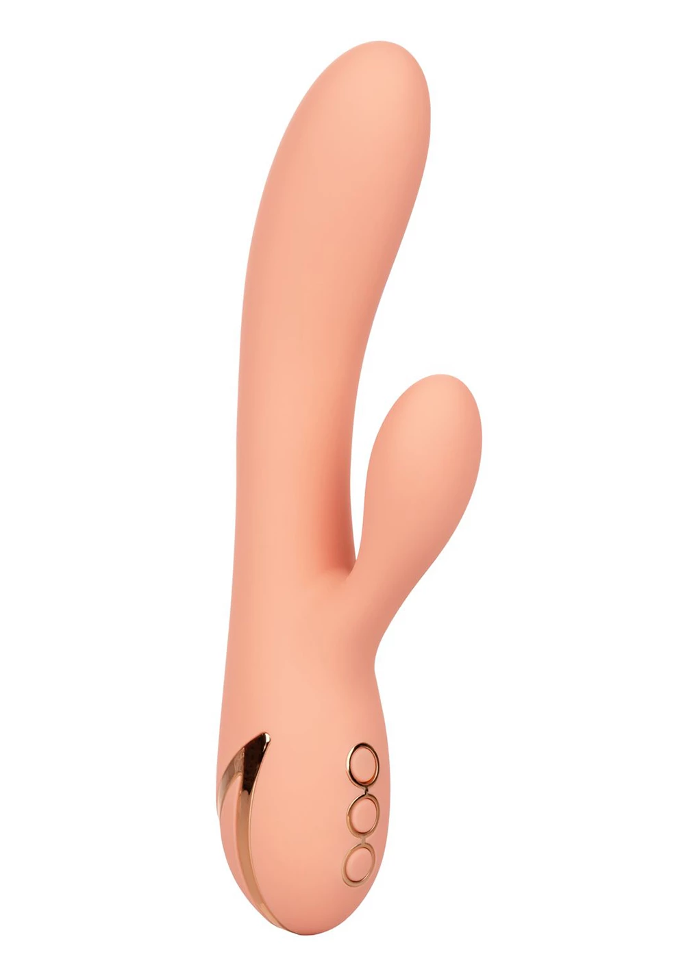 Monterey Magic offers 10-functions of gyrating motion in the stimulator with 3 speeds of independent shaft vibration allowing you to experience pleasure sensations with just two little buttons (one controlling the stimulator, the other for the shaft). A third button controls the power, with an included three-second-press travel lock.