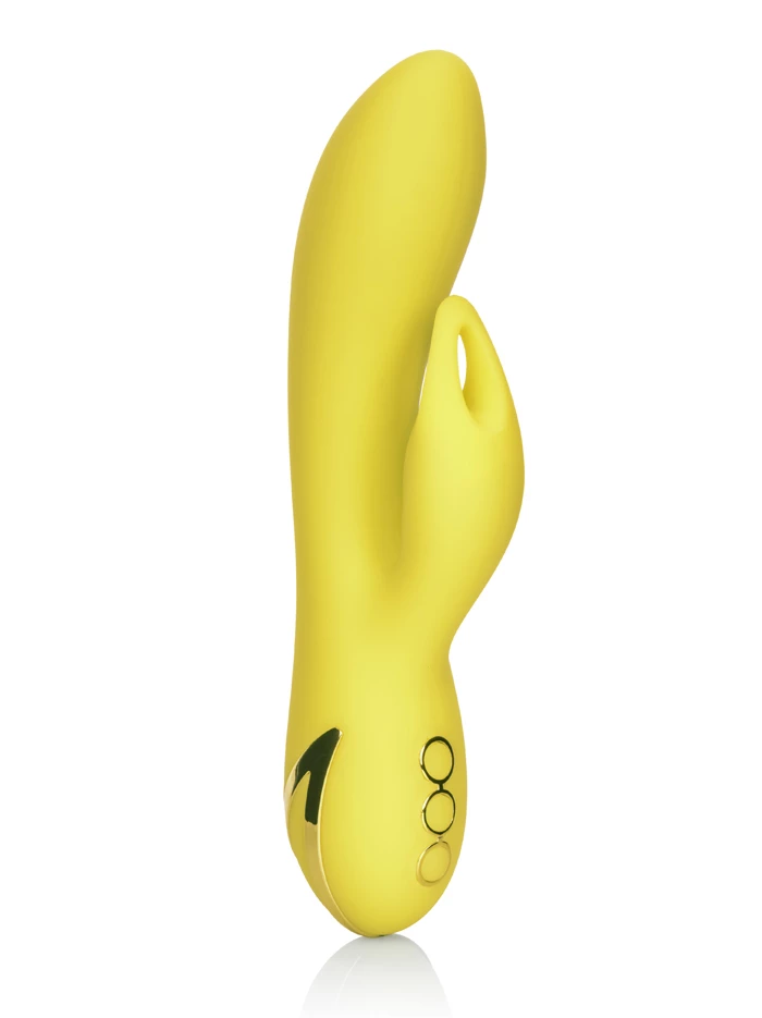 Dream of sexy fun under a golden sun with a new kind of twice-as-nice vibrator. This powerful waterproof toy has a uniquely-shaped clitoral stimulator – rather than bunny ears or a tongue shape, it’s round, meant to encase the clitoris and offer stimulation around it, rather than on. The shaft is equipped for three levels of vibrations independent of the external stimulator, which lets you explore ten more functions of vibration, escalation and pulsation. Once you find your favorite setting there’s no need to scroll through all ten next time you turn Venice Vixen on–its memory chip resumes the last function you were using. Take it anywhere with confidence thanks to its travel lock: an