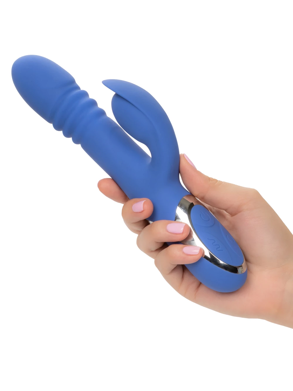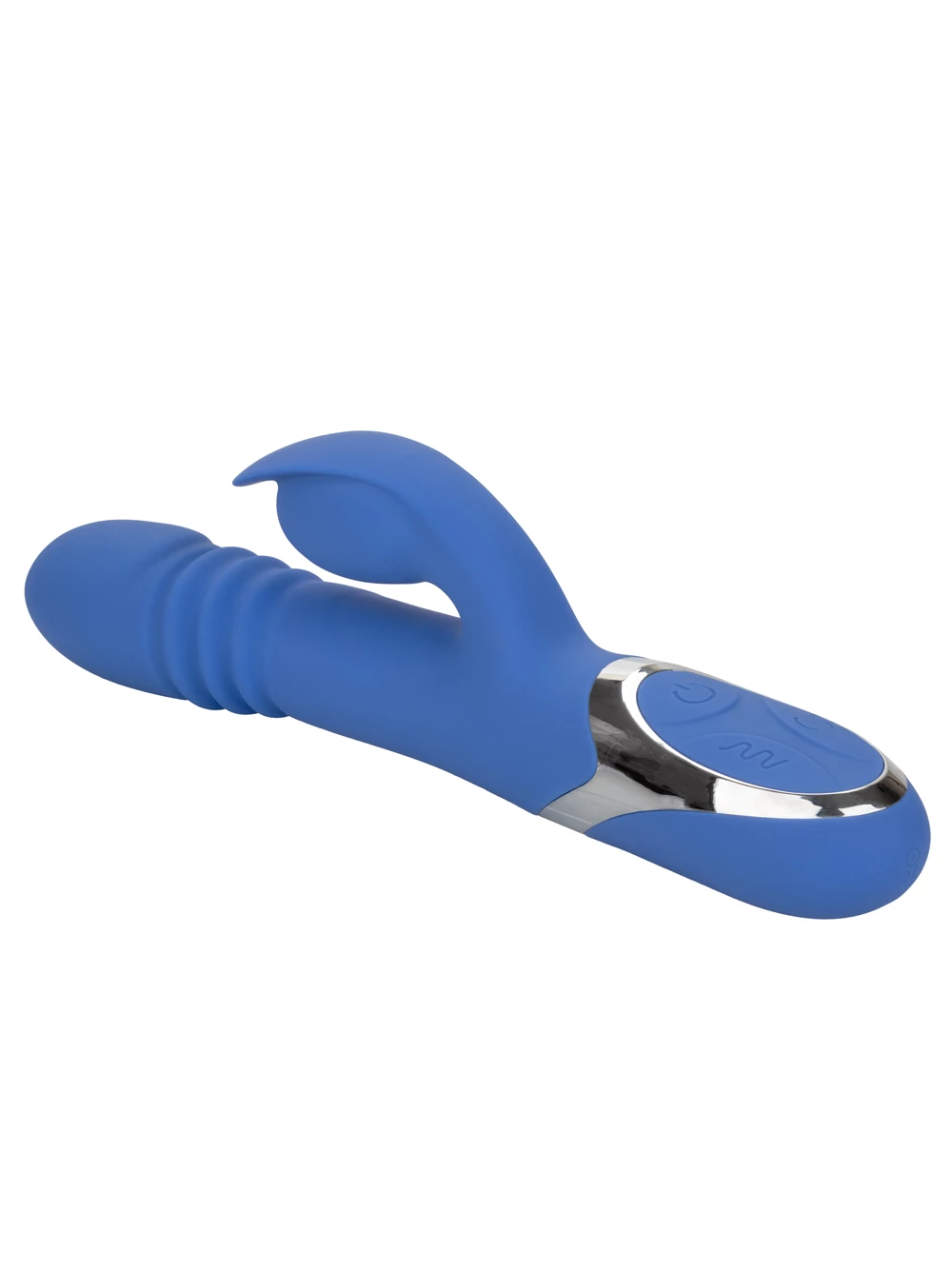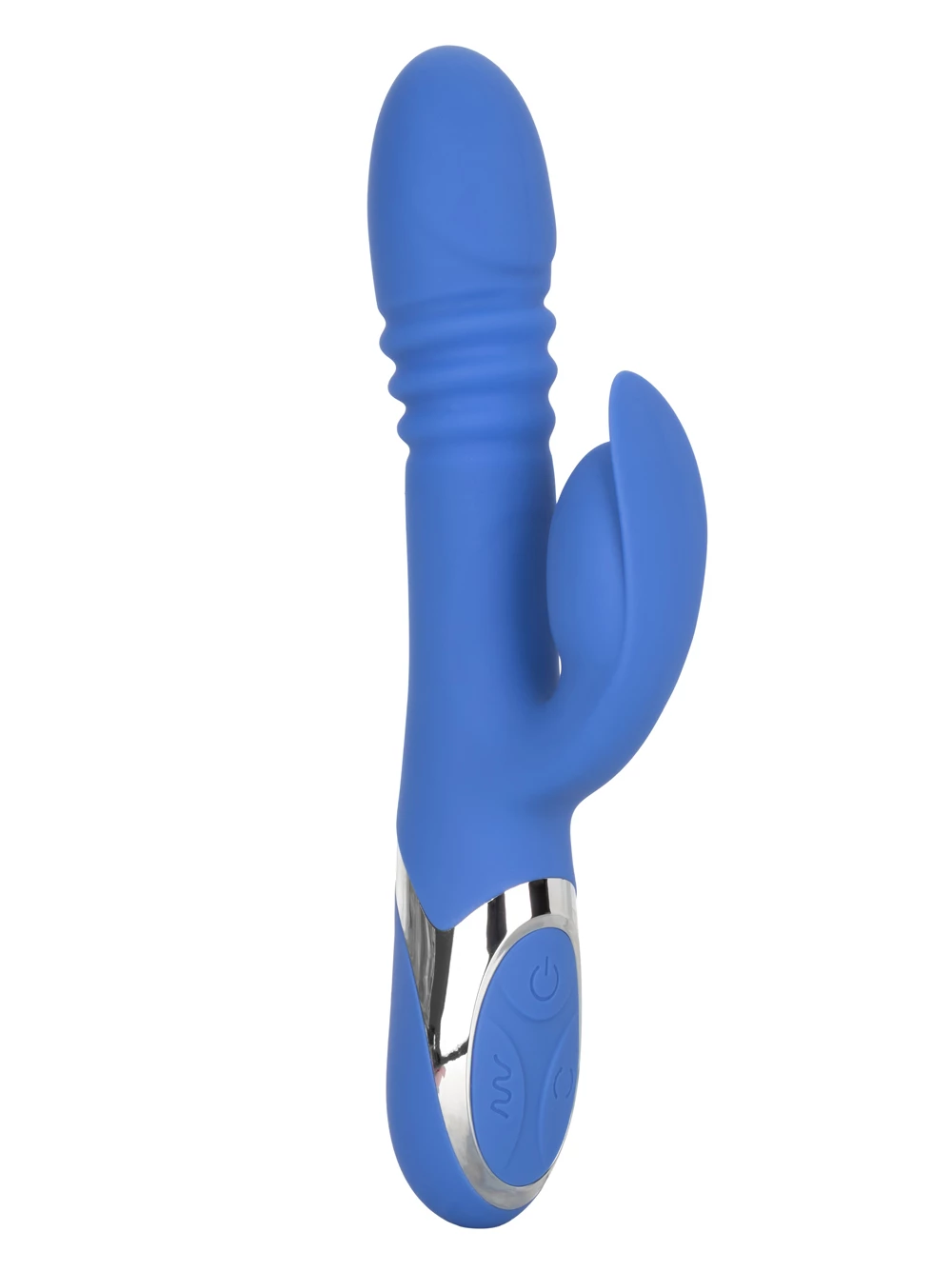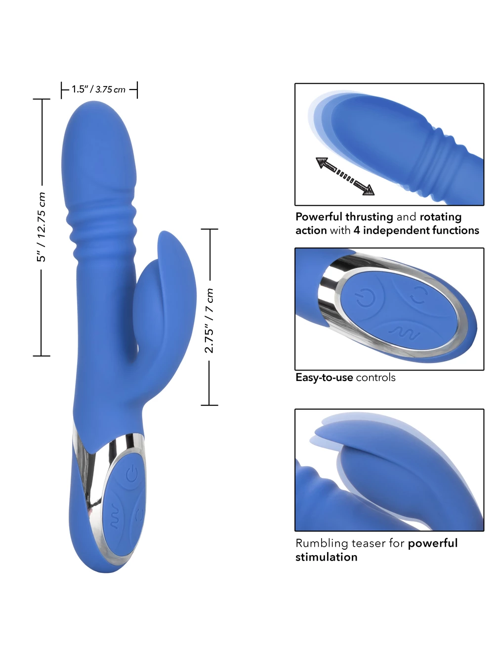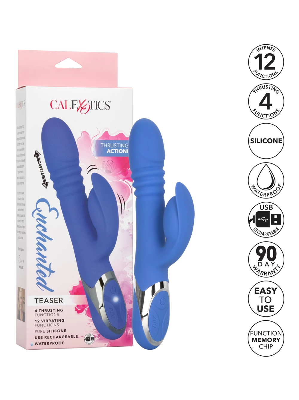 Teaser is a vibrating twice-as-nice-style thruster styled with a flower-bud-like external stimulator whose rounded tip spreads out the pleasure, is ready to enchant you! This toy does it all: The external “bud” offers you 12 independent vibrating levels, but that’s just the start. Choose your favorite of four separate strong thrusting modes, or advance through them all–thrusting action continues even when pressure is applied. With a bulbous tip for G-spot (or P spot) stimulation, plus ribs located at the center of the shaft that assist in the thrusting motion, but also provide an extra level of stimulation during penetration, this toy is ready to stimulate you every which way!