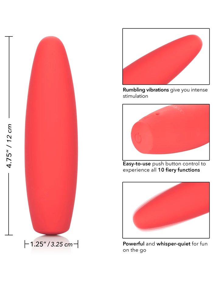 Flame on with this petite external vibrator that’s perfectly sized for your hand and shaped to fit comfortably against the body whether you’re enjoying it solo or with a partner. Flame’s smooth and oblong design make it a great choice for pinpoint or more diffused stimulation; you can use all surfaces of this vibe to explore varying sensations. Featuring ten functions, so you can choose your favorite combination of vibration, pulsation and escalation, and a security travel lock – hold for two seconds to turn on or off. USB rechargeable (cord included). Charge for 2.5 hours and receive 30 minutes of use time on high, 3 hours on low. Care for your toy with mild soap and water.