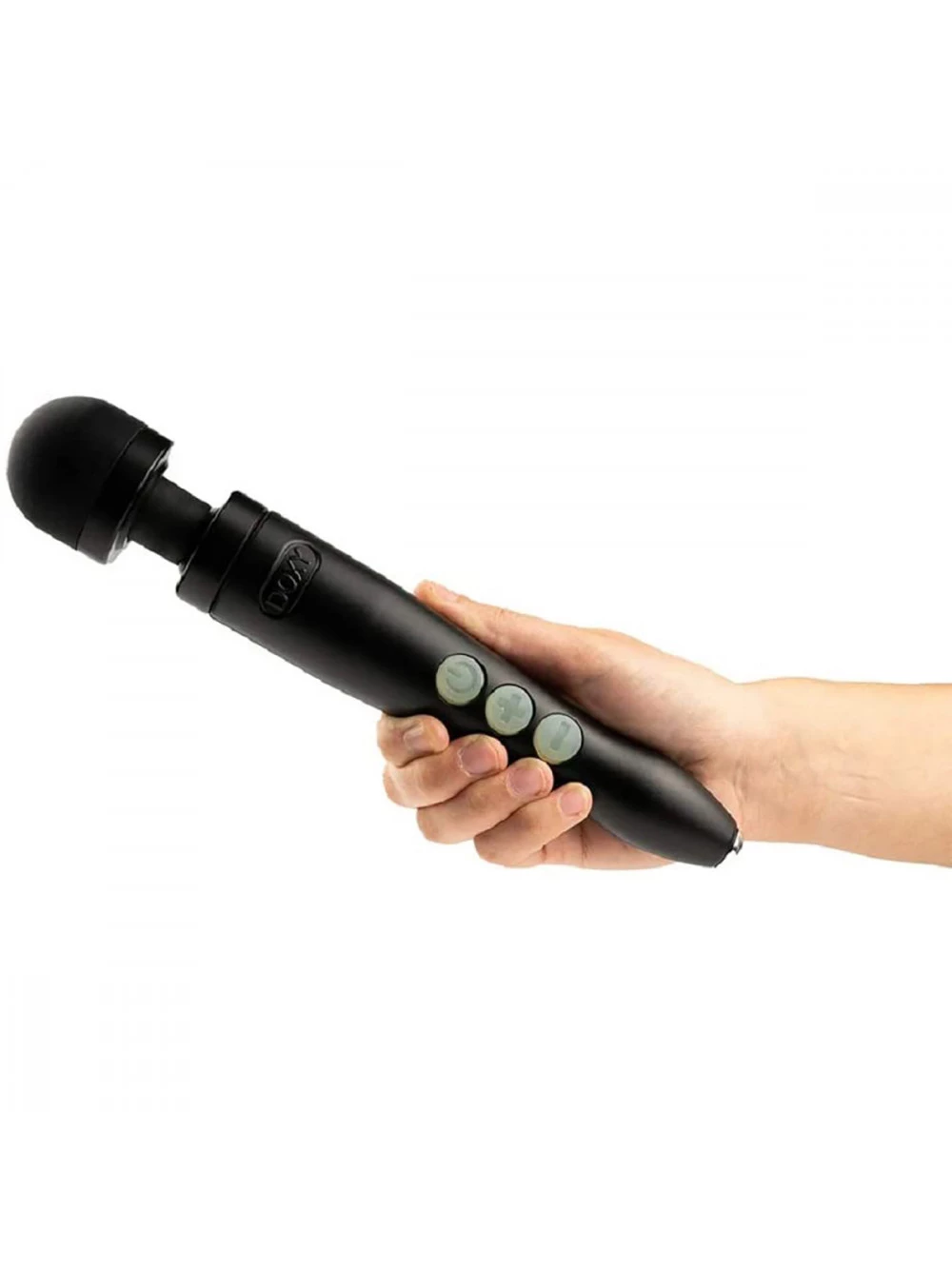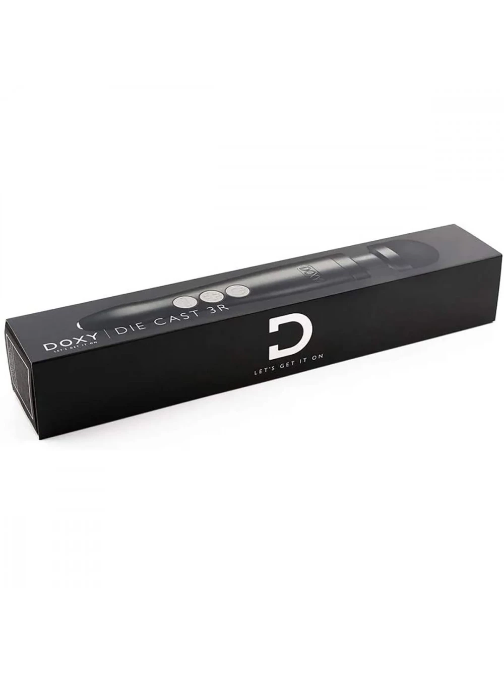 Designed, engineered, and assembled in the UK, this sturdy, rechargeable wand includes an escalating pulse setting (just hold down the power button for 3 seconds). Engage the travel lock by pressing the power button and minus button at the same time for four seconds. Doxy can be fully charged in just four hours using the USB cable provided. When the red light on the power button disappears, you’re ready to enjoy your Doxy massager magic for up to one hour at the highest setting. The Doxy Die Cast 3R is made of aluminum and titanium alloy with a medical-grade silicone headcover. Weighing in at 1.4 lbs, this wand is not for the faint-hearted!