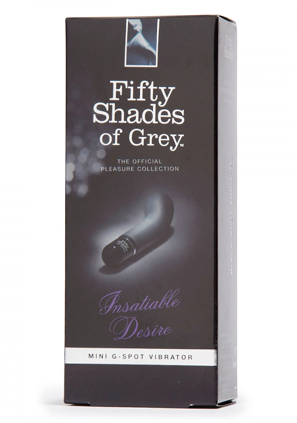 Plentiful pleasure in a small package, Insatiable Desire is perfectly sized for G-spot stimulation. A slimline vibrator with an upwardly curving tip that nuzzles the G-spot, its 10 vibrating functions are guaranteed to satisfy. Crafted for pleasure from smooth silicone, this powerful vibrator is inch-perfect from the angled tip to the base of the slender shaft. Use the bulbous tip to caress the G-spot or use externally while experimenting with the 3 speeds and 7 patterns of passionate vibration. Live out fantasies by taking this silicone vibe into the bath or shower — this waterproof vibrator loves to get wet. For the most satisfying play, liberally apply water-based lube to the shaft, but avoid silicone lubricant as it’s not compatible with the silicone composition. Part of the Fifty Shades of Grey The Official Pleasure Collection approved by author E L James. Supplied with a Fifty Shades of Grey storage bag, Insatiable Desire is the ideal erotic gift for fans of the trilogy.