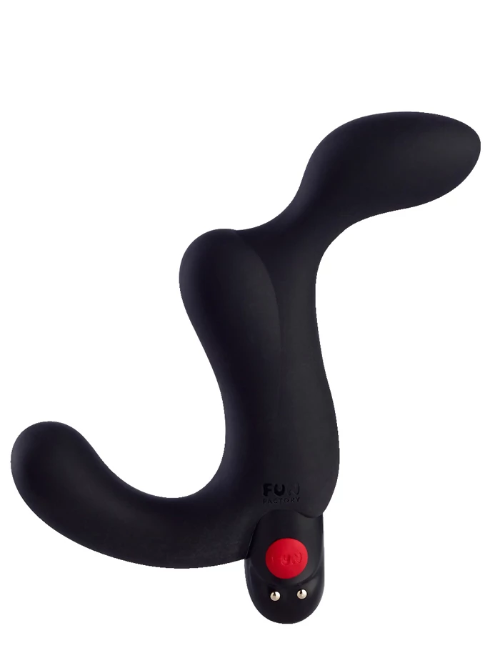 Sensational prostate pleasures await with this uniquely-shaped, curvy, ergonomic silicone plug that stimulates both prostate and perineum via pressure and powerful vibrations. Featuring a bulge to enhance feelings of fullness, an external “tail” that nestles around the perineum (and makes the Duke easier to remove than some plugs), and a water-resistant vibe that sports eight different vibration speeds & three pulsation settings–here’s an anal toy that’s ready to deliver all kinds of thrills! Vibe is rechargeable (using Click-n-Charge technology), and removable to make cleaning easy. Charge for about 3 hours before first use.