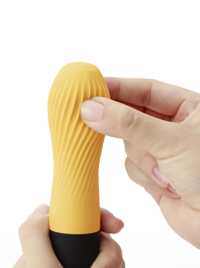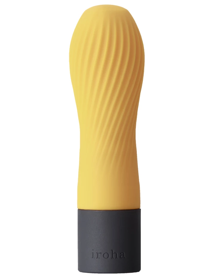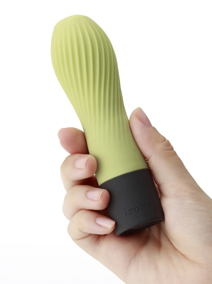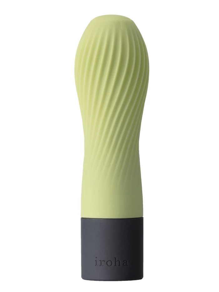 The exterior of Iroha Zen starts out smooth and firm at the base, with diagonal raised ridges that become more defined as the vibrator gets softer and wider, ending at a smooth tip. The cushiony squish-able textured silicone offers softness during insertion as well as multiple ways to experience sensation on clitoris, labia, or wherever it feels best. Styled with lovely colors that pop and please the eye, at an accessible size. Featuring one-touch controls at the base of the vibrator: Press and hold three seconds to turn on, then continue pressing the button to rotate through three intensity levels and one pulsation mode. Takes two AAA Batteries (not included)