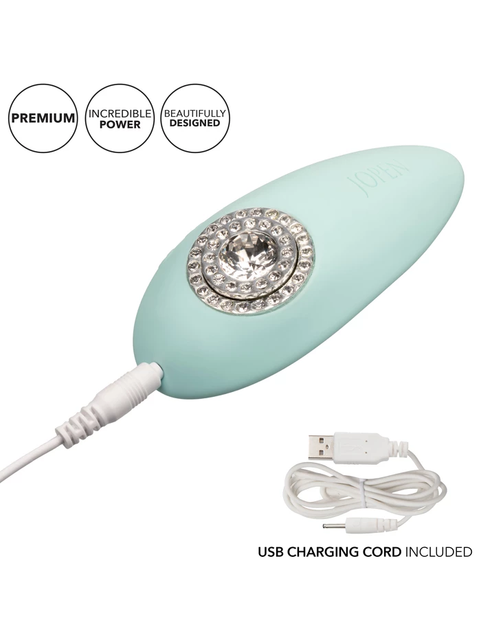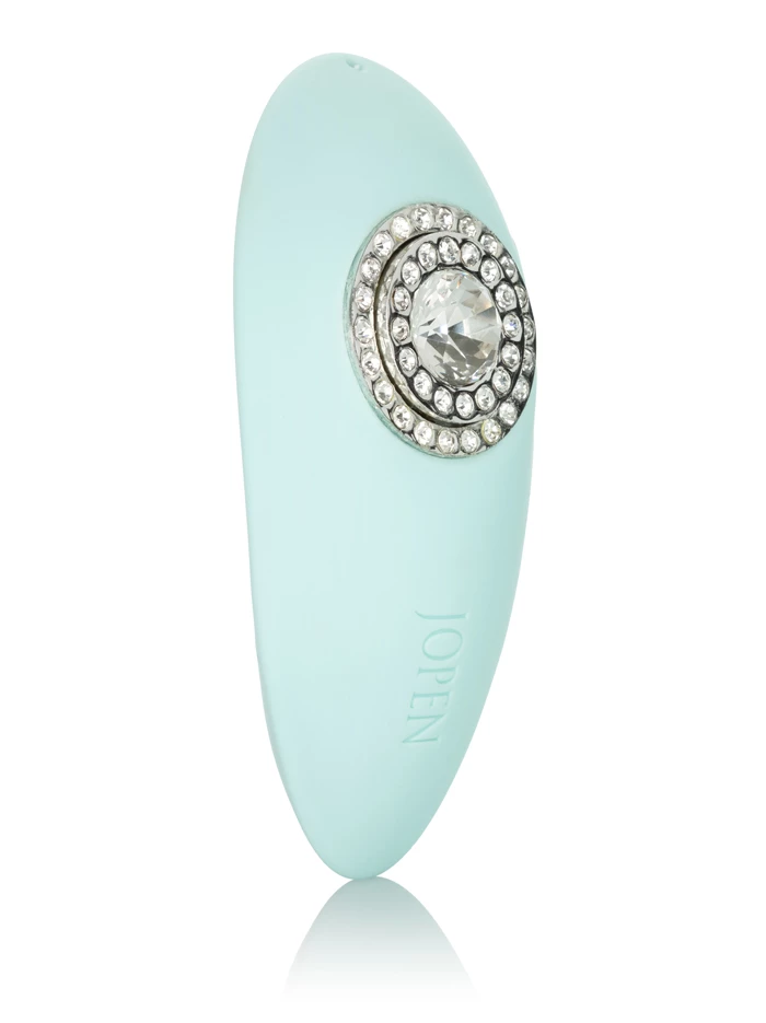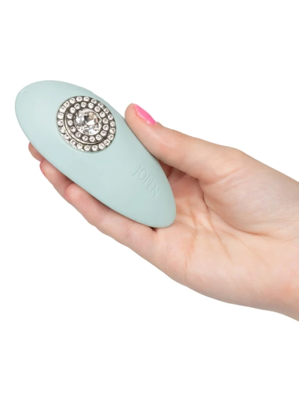 Petite and elegant, Grace is an ergonomically-shaped silicone vibrator whose slender design is perfect for both solo and partnered play – just cup the smooth, satiny, compact shape in the palm and hold against the body during penetration, clit-focused self-pleasuring, or other sensual and erotic play. Grace’s slim shape allows the vibe to comfortably nestle into the labia and surrounding area. With seven functions of vibration, pulsation and escalation to explore, plus five independent speeds for each, Grace lets you find your perfect buzz. A gem-shaped crystal on top acts as a control button; hold for 3 seconds to turn on, then continue to press until each function is reached. Just press the +/- button, located on the side, to increase or decrease intensity for any given function. To turn off, hold for 3 seconds. USB rechargeable; a two-hour charge yields 40 min of high-speed use. When plugged into its power source, a solid red LED indicates the vibrator is in Charge mode. A white light indicates Grace is fully charged. Waterproof; clean with mild soap and water. We recommend using water-based lubricant.