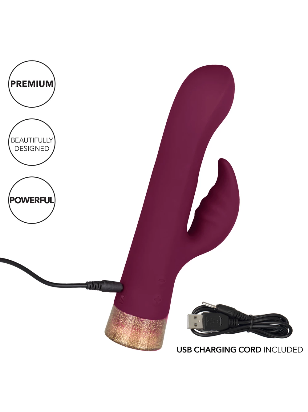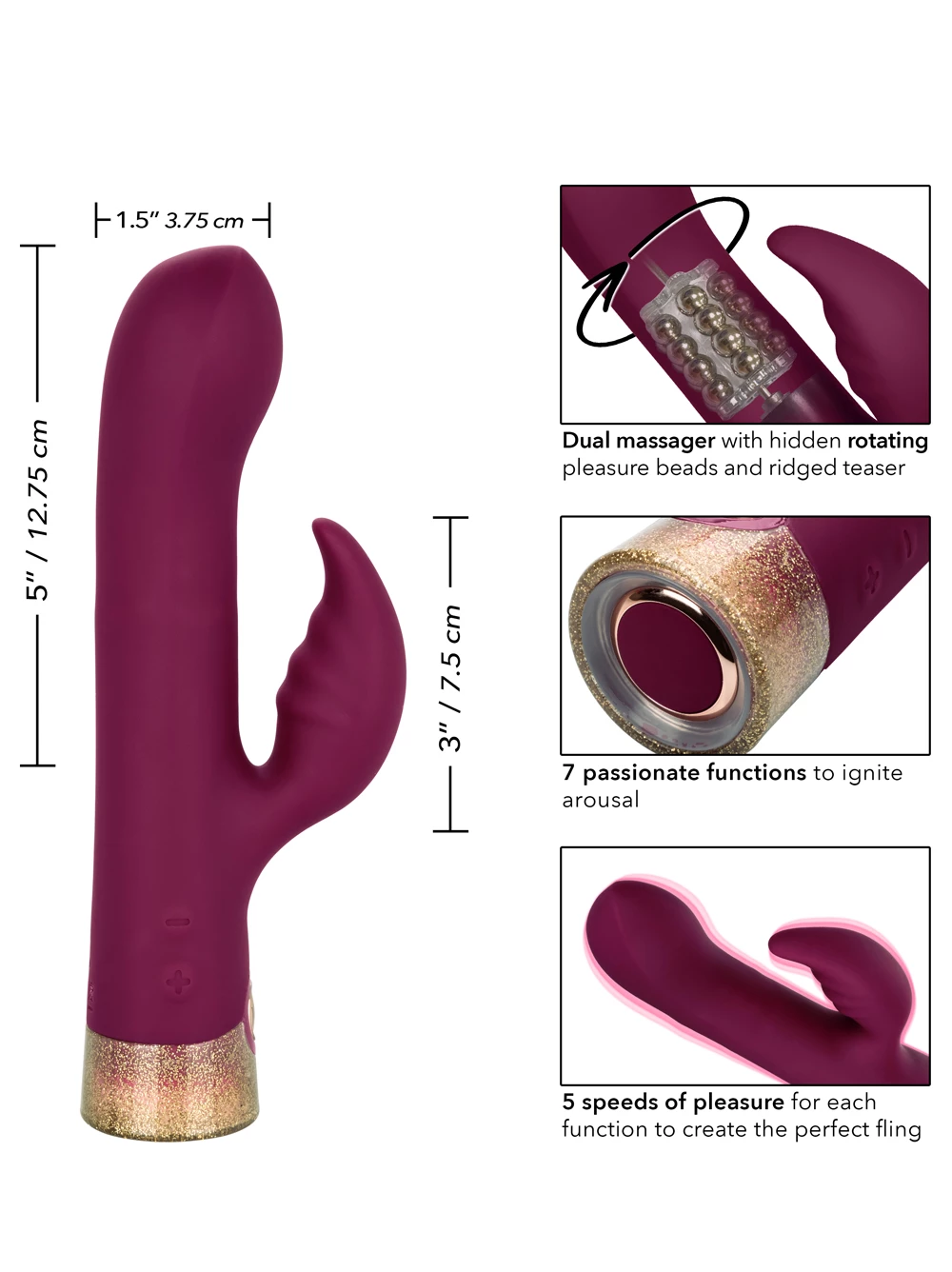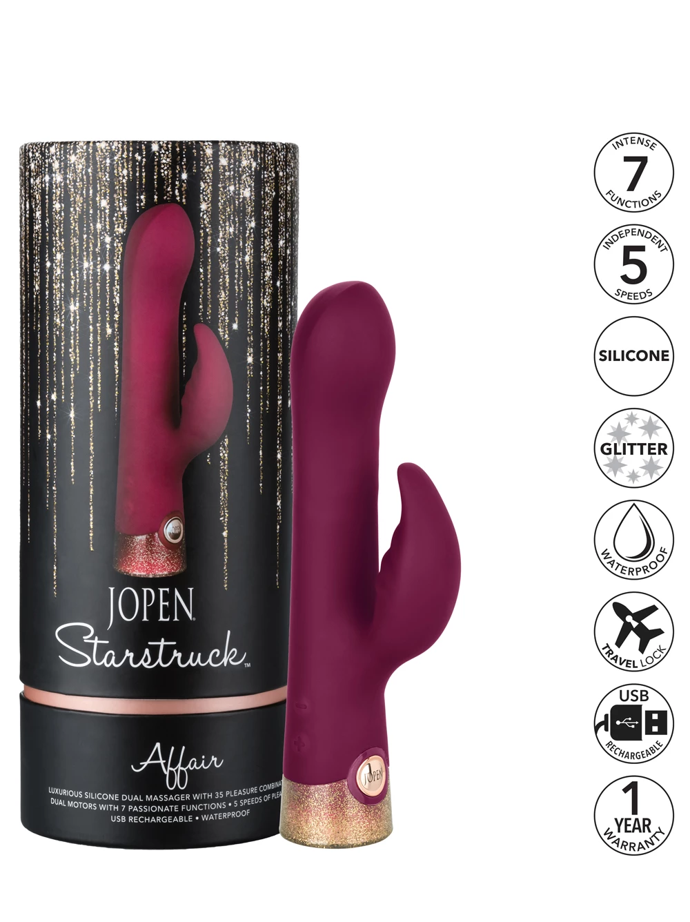Who says you can’t be glamorous in a pair of pajamas? Turn your bedroom into a red carpet with the Starstruck Affair! The classic twice-as-nice vibrator gets a Hollywood makeover with a beaded rotating shaft, flickering external teaser and 35 functions for you to explore! The Starstuck’s impressive resume boast 7 pulsation, vibration and escalation patterns and 5 independent speeds that’ll have the critics raving! The easy-touch controls make it easy to click through all the settings to find your fav. The twin motors in the shaft and external nub are ready to work and the rotating beads allow the pliable shaft to deliver next-level stimulation to all your hot spots.