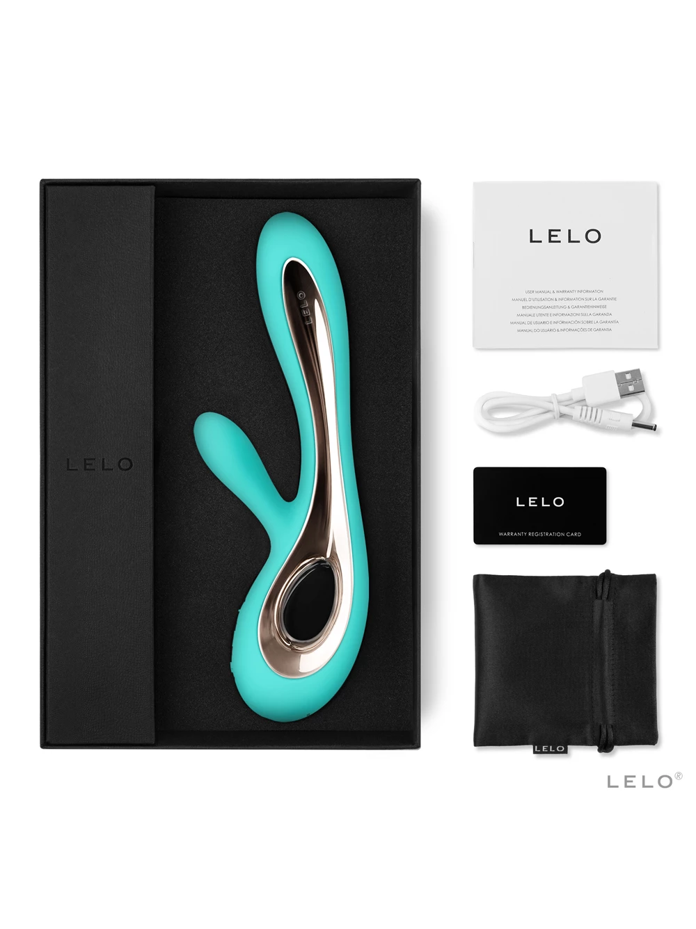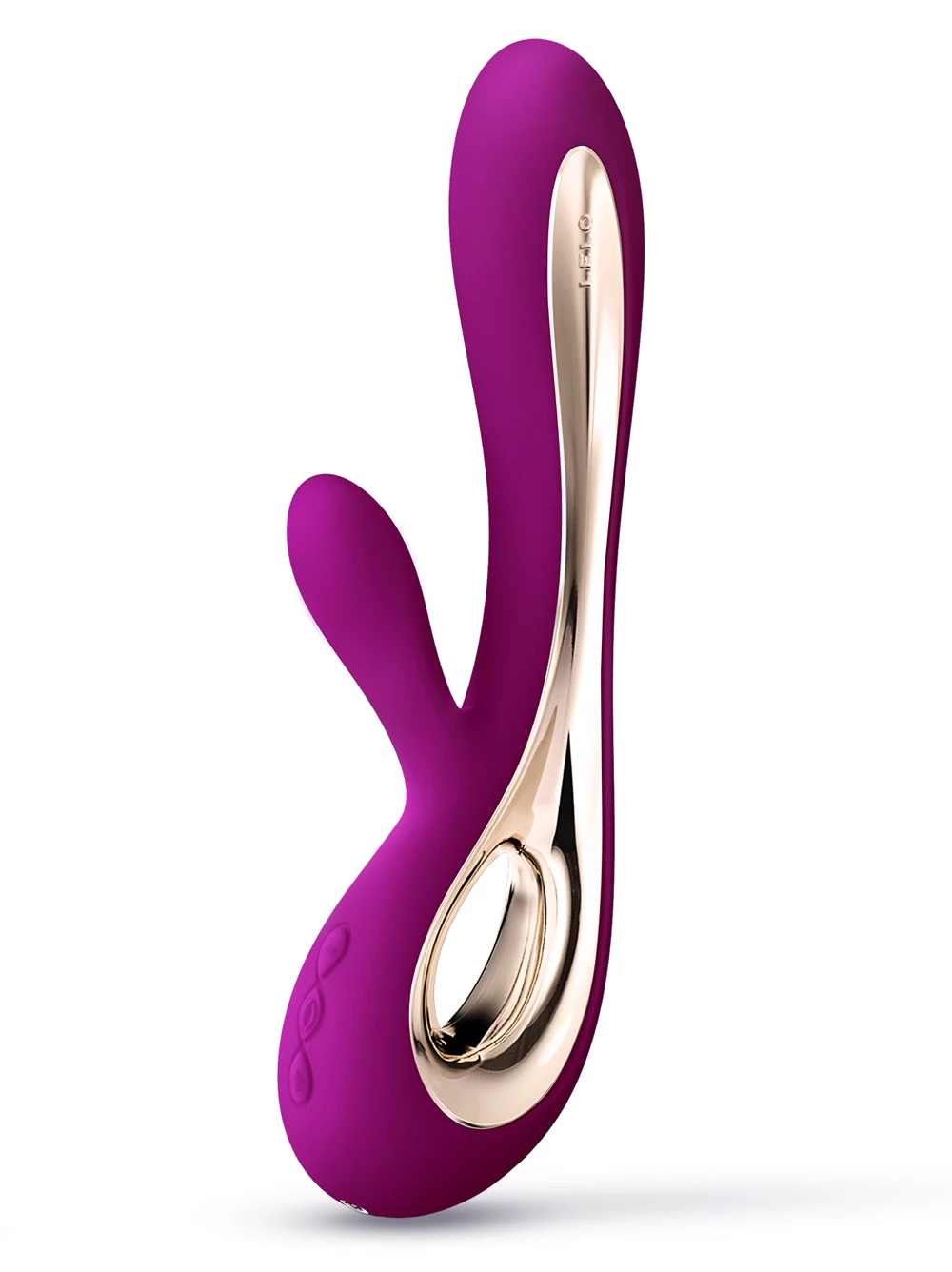 The Soraya 2 is an elegant massager that believes you shouldn’t have to choose between the enjoyment of internal and external stimulation. You can finally have it all with this innovative twice-as-nice vibe! The next generation Soraya 2 has been upgraded with a broader and thicker shaft and a slightly reduced angle for improved clitoral massage. The internal portion curves up slightly for G-spot or prostate stimulation, while the external attachment is flexible enough to suit most bodies. The ergonomically designed handle gives you a metallic colored loop for easy grip and maneuvering during use. The Soraya 2 is a completely waterproof rechargeable vibrator; sex toys just don’t get much more luxurious, beautiful, and pleasurable than this. Dial in your perfect setting with its three-button interface that lets you choose from twelve different speeds and vibrational modes. The Soraya 2 is wrapped in a silky-soft silicone exterior with hints of sleek ABS. Its strong, whisper quiet motors make this an excellent addition to your toy collection. Two hours of charge gets four hours of continuous use (while holding a charge for up to 90 days, in standby mode).