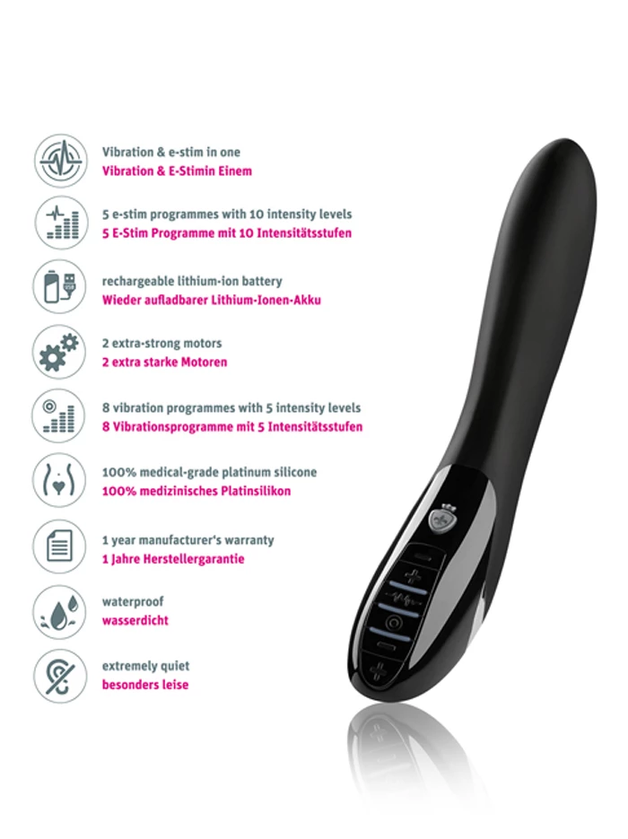 The current intensity and frequency of these Mystim toys are deliberately designed to be too weak to burn or cause harm. Waterproof and submersible. Rechargeable via included magnetic USB charger; a five-hour charge time yields 2.5 hours of use. Comes with a discreet case for travel and storage.