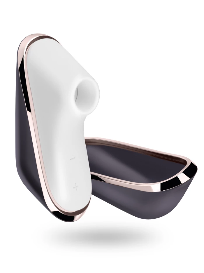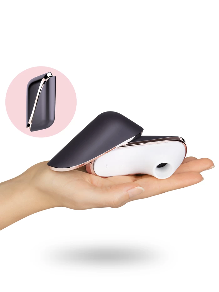 Pleasure will be at your fingertips everywhere you go with this cleverly-designed, petite external stimulator powered by pressure-wave suction. Its elegant shape is part of the Traveler’s discreet and travel-friendly functionality. The lid easily connects magnetically to the body of the toy during storage. Easy to grip, the palm-sized stimulator can be cupped comfortably during use, and suction allows for hands-free enjoyment (depending on the intensity of suction and the user’s body shape, since the piece that contacts the clitoris is a one-size circle, and bodies do vary). Even if it isn’t entirely hands-free, it’s doesn’t need to be held as most vibrators do.
