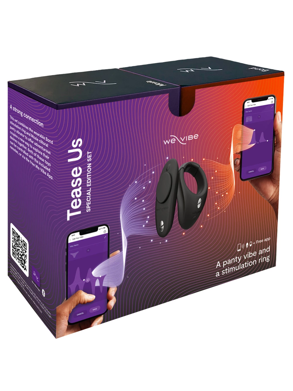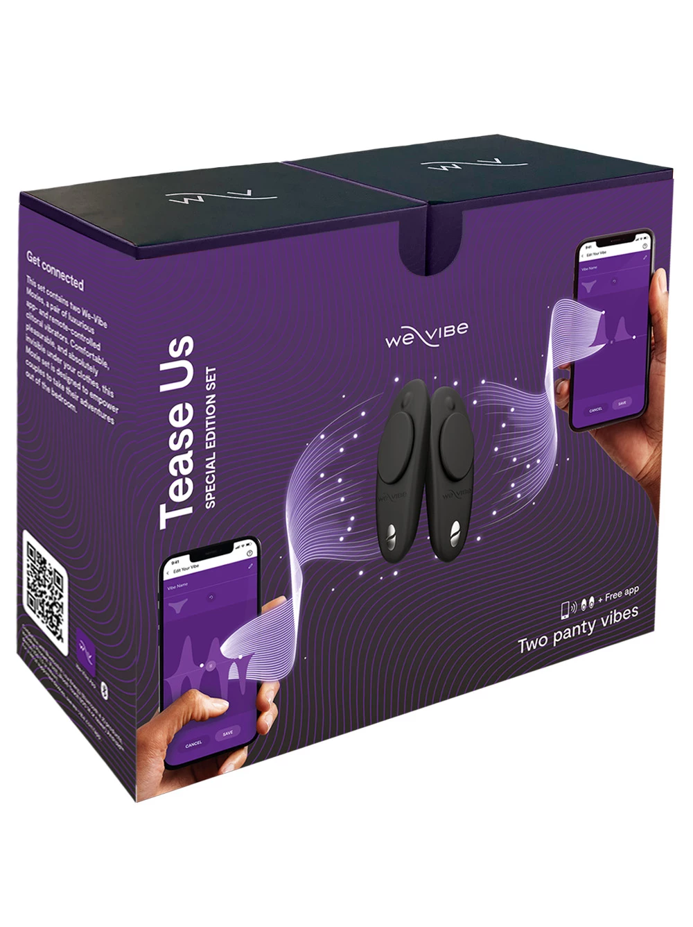 Tease Us is a set of app-controlled wearable vibrators with something for every couple. We-Vibe has combined its most popular wearables, the Bond vibrating stimulation ring for penis owners and the powerful Moxie panty vibe for vulva owners. Bond is designed to fit almost any penis size and Moxie has a perfectly contoured shape with a slip-proof magnet that keeps it in place. Both toys are IPX7 waterproof, with 10+ intensity levels. Small, lightweight, and comfortable and they can be worn discreetly.