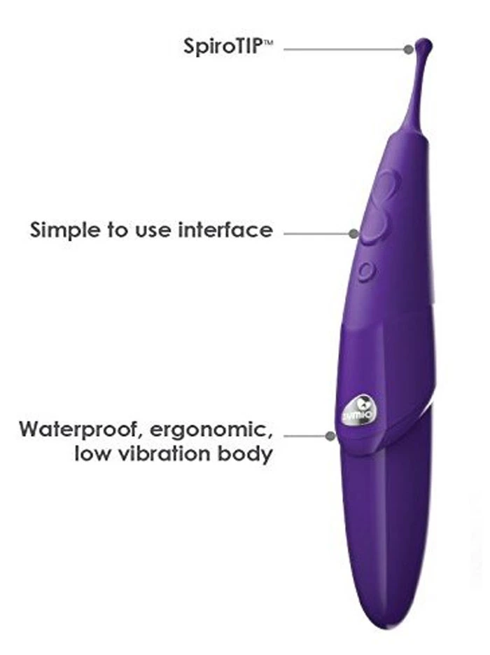 Zumio’s super-slender tip creates an intense oscillating vibration for external pinpointed pleasure and deep stimulation via its SpiroTip and Pleasure Wave technology. Conceived, designed, engineered, tested, and perfected by women, this unique toy offers 8 intensity levels, with the highest level more than twice as strong as the lowest. Zumio’s on/off button is positioned separately from the buttons that increase and decrease intensity though we recommend experimenting with pressure and body positioning for added intensity control. The SpiroTip is designed to offer vibration through the tip as well as the βstemβ β explore differing sensations by laying it against the body or using the tip to enjoy precise stimulation (for those who like that level of focus). Because the small tip brings such focused intensity, we recommend the user start at the lowest intensity level and then determine when/whether to move the tip or escalate the power level.